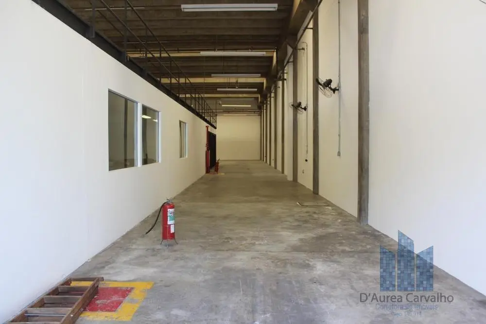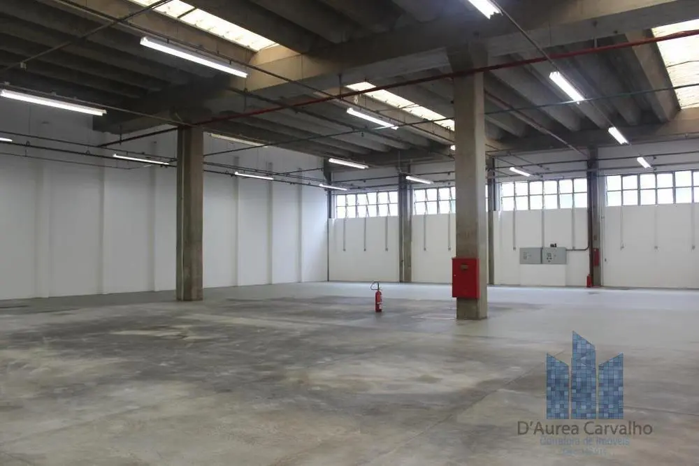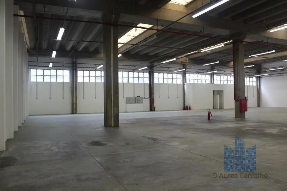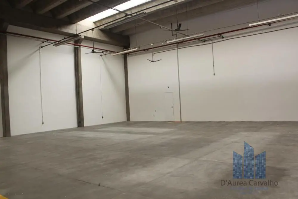 Galpão com boa ventilação e luminosidade. Possui pé direito livre de 6,5m, cobertura de telha de concreto e banheiro de serviço com copa. Vagas internas de garagem para 25 veículos.