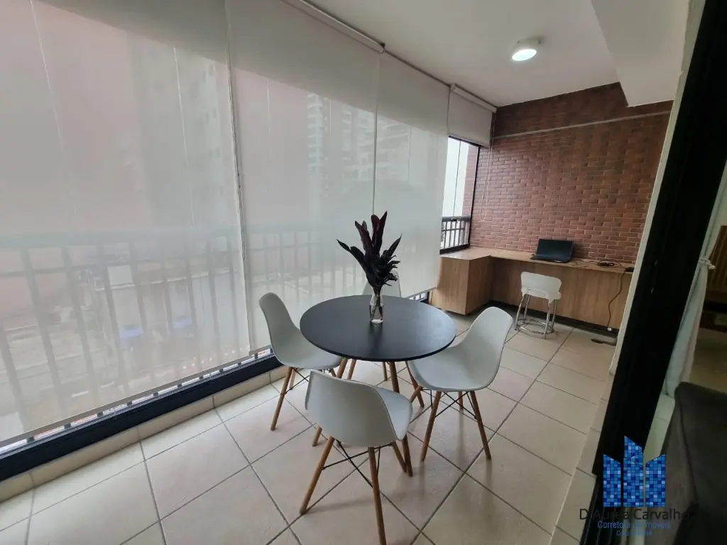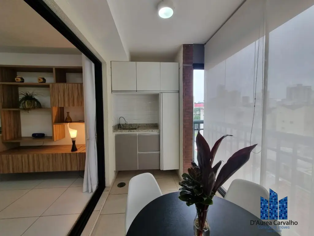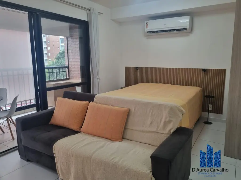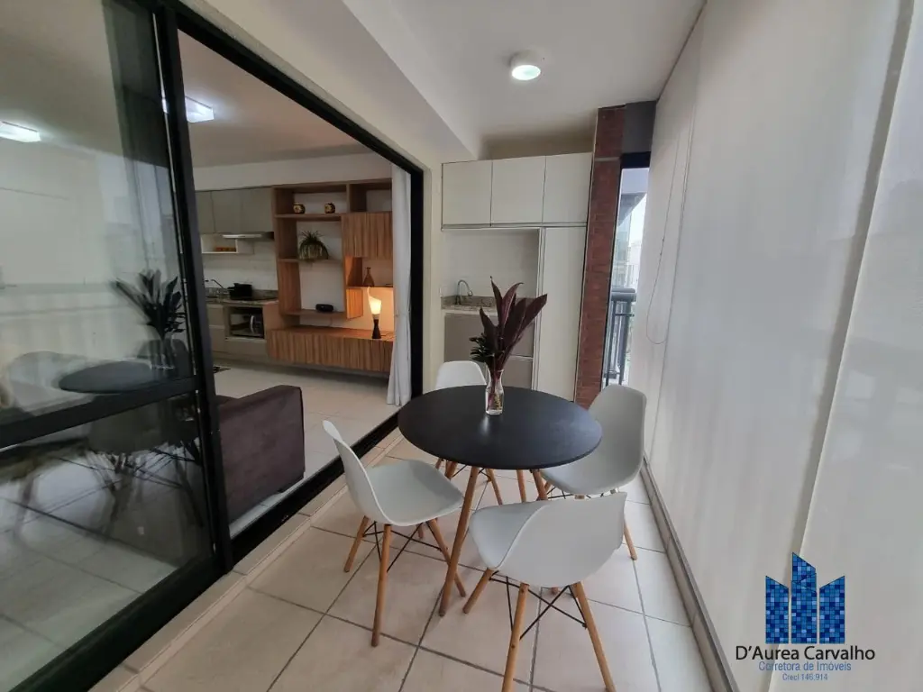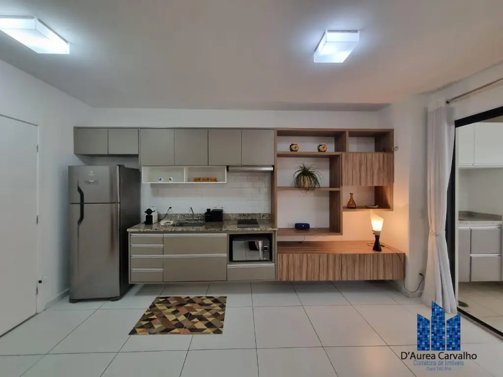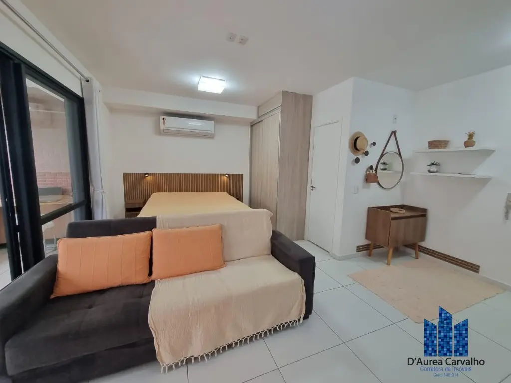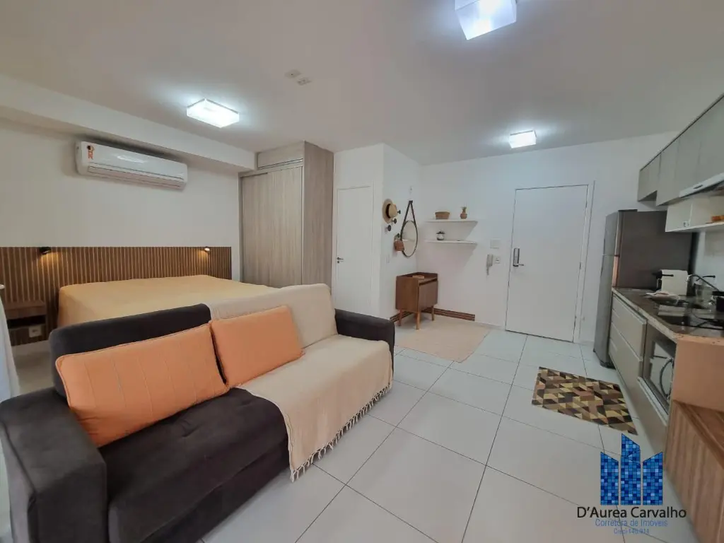 Apartamento mobiliado e equipado, localizado no sexto andar com boa ventilação e luminosidade. Possui: living integrado a varanda, banheiro social e cozinha americana. Possui uma vaga de garagem.
