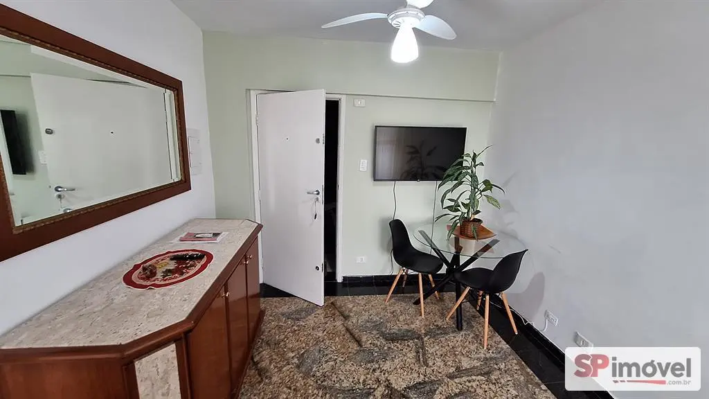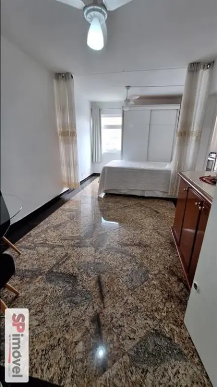 Esta kitnet de 31 m² é perfeita para quem busca praticidade. O espaço integra sala e quarto, já equipado com guarda-roupa, cama de casal e TV. Localizada no 10º andar, oferece vista livre e abundante luz natural.