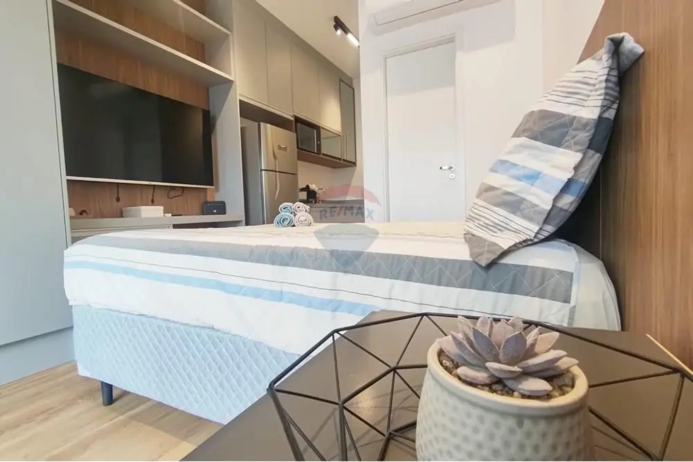 Studio mobiliado de 25m² para alugar no Condomínio Nik Perdizes, em Perdizes, São Paulo. Apartamento completo, moderno e pronto para morar, com ar-condicionado, cama, armários planejados, fogão cooktop, forno micro-ondas, Geladeira e Tv. Ótima opção para quem busca studio mobiliado em Perdizes com lazer completo.