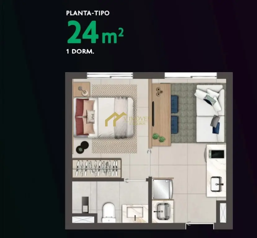 Apartamento Studio 24m² distribuídos em sala, cozinha, 1 dormitório e banheiro. Mobiliado conforme as fotos. Prédio e Apartamento novo.