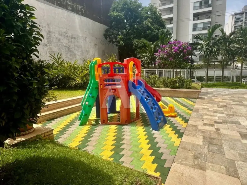 Condomínio com lazer: piscina externa e piscina coberta com raia de 25 metros, academia, salão gourmet, churrasqueira, quadra poliesportiva, brinquedoteca, sala de jogos e playground.