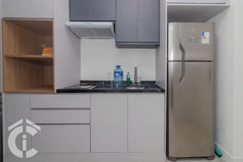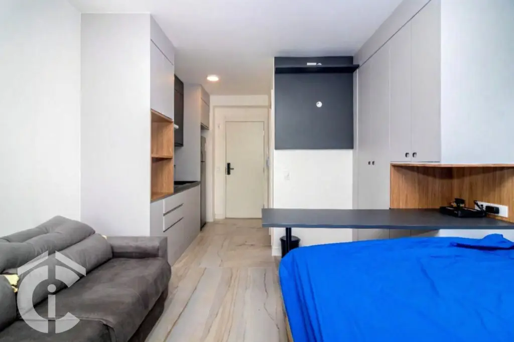Apartamento novíssimo tipo estúdio com 27m2 de área útil, totalmente mobiliado, cozinha com fogão tipo cooktop por indução e depurador de ar, geladeira, armário de parede e nicho para microondas, Banheiro com box em vidro temperado e paredes azulejadas, além de oferecer ducha com aquecimento à gás, jato d'água potente e quente. Quarto/sala com sofá de 2 lugares, armários de parede e painel para instalação de TV, podemos acrescentar o ar condicionado, fundamental para os dias de hoje e persiana tipo roll on que garante um ambiente escuro para o descanso. Terminamos com uma pequena varanda que proporciona bela vista da região e ar fresco. O apartamento não possui vaga de garagem.