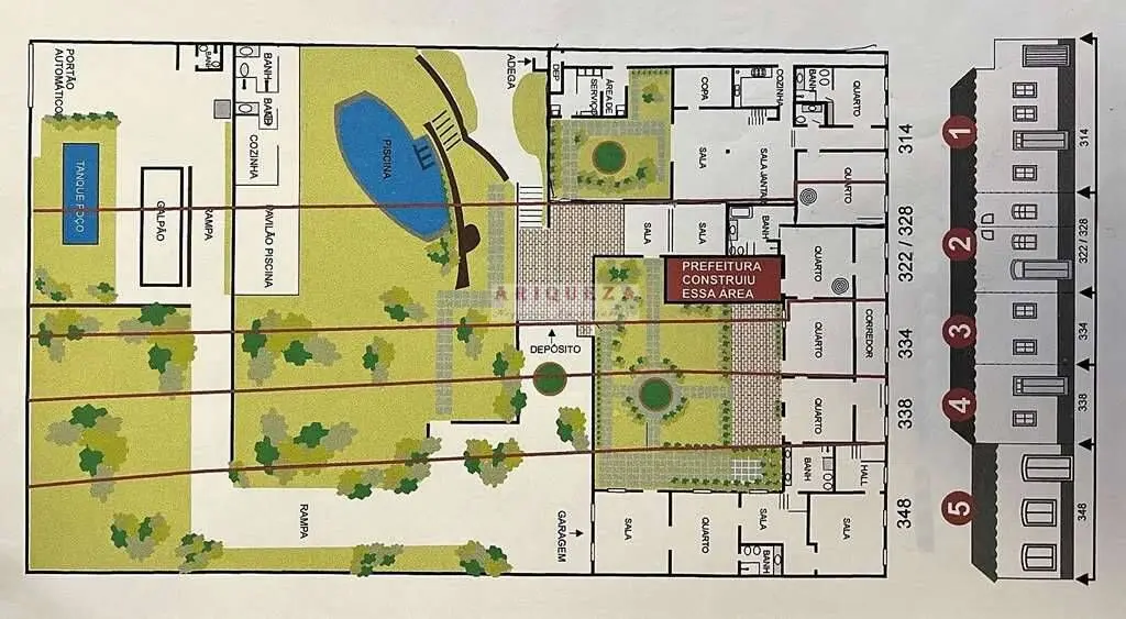 Propriedade em 3 patamares, com construções assobradadas sendo a maioria dos ambientes no nível térreo.