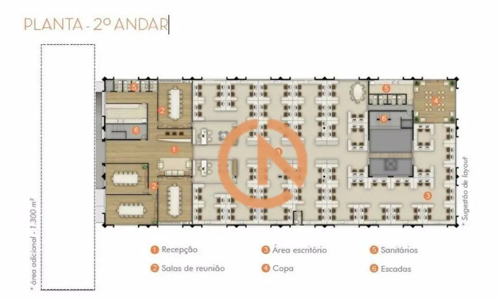 Laje ampla e flexível, facilmente adaptável a qualquer tipo de layout. Acessos social e de serviços segregados, com área de docas com plataforma elevada. Pé direito livre: 3,00 m. 29 banheiros distribuídos no imóvel. Eletro calhas já instaladas para distribuição da rede elétrica e de dados. 2 elevadores de carga. Iluminação natural privilegiada. 1º Andar 1.781 M² 2º Andar 1.781 M² Térreo 1.865 M² Subsolo 676 M² TOTAL 6.103 M²