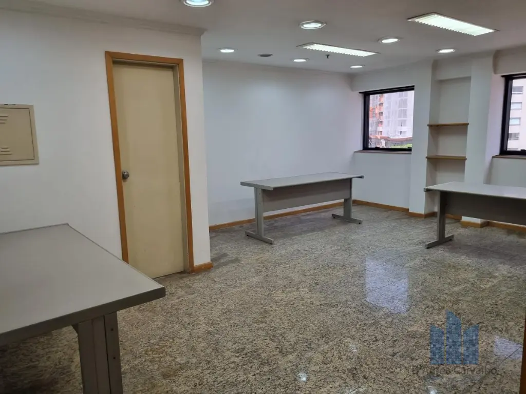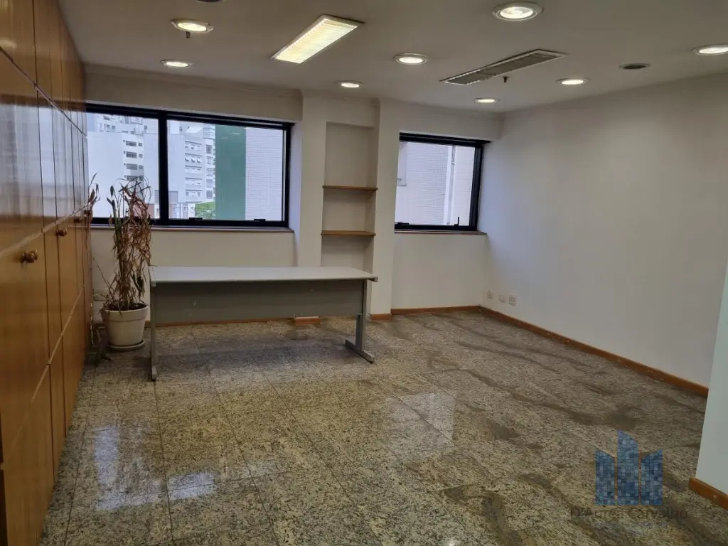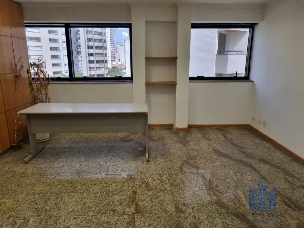 Conjunto comercial localizado no quinto andar com boa ventilação e luminosidade. Possui 2 salas e 2 banheiros sociais. Vaga de garagem para 2 veículos.