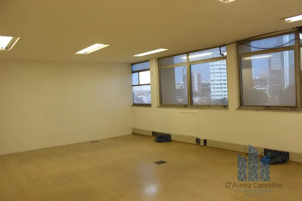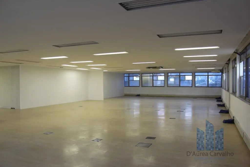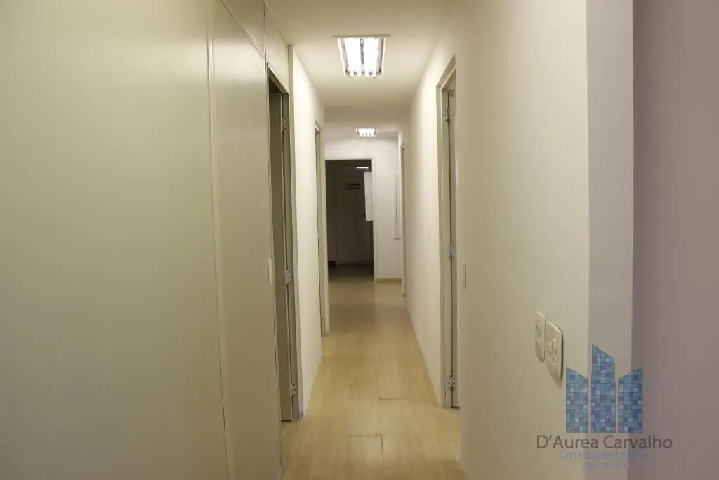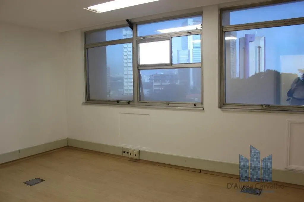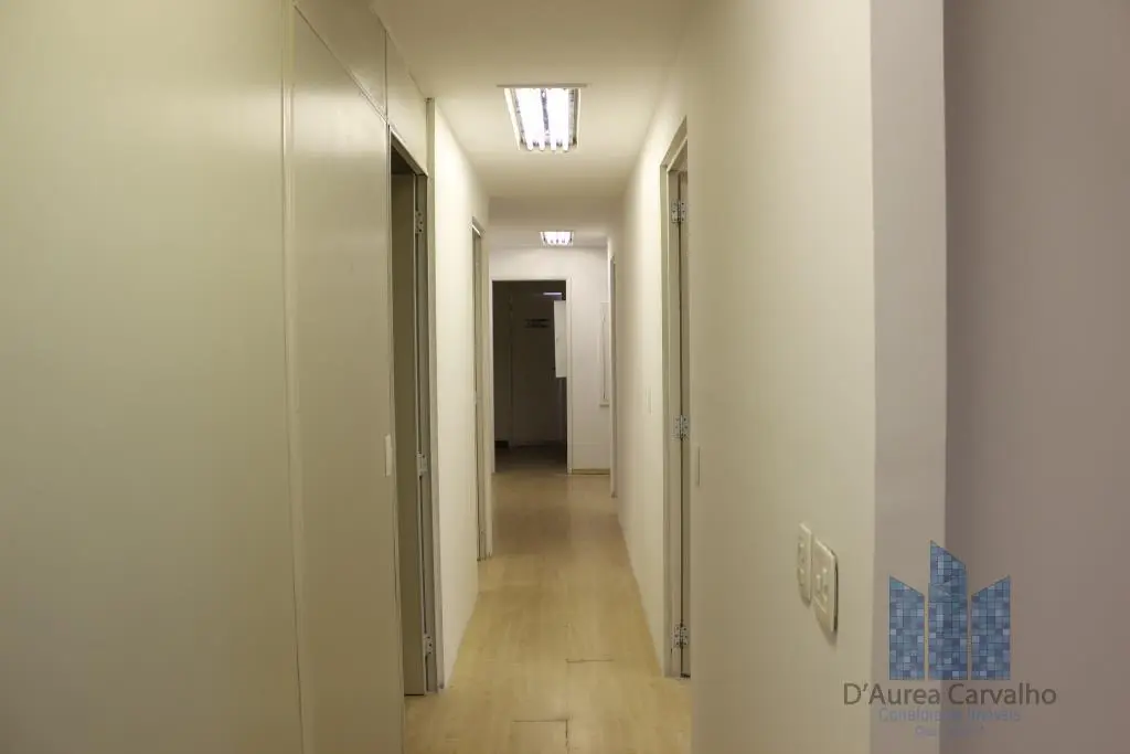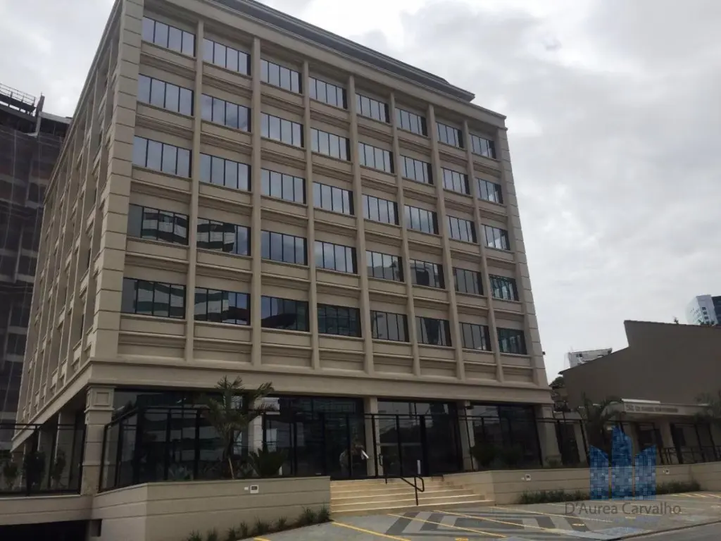Conjunto comercial com ar condicionado, localizado no terceiro andar com boa ventilação e luminosidade. Possui: 1 sala ampla, 1 banheiro social e copa. Vaga de garagem para 7 veículos, sendo 6 no subsolo e 1 no piso térreo.
