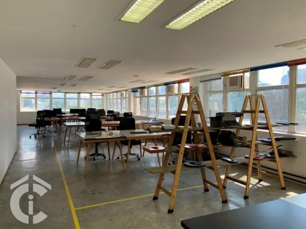 O imóvel é composto por dois conjuntos, totalizando uma área útil interna de 448m², além de aproximadamente 150m² de varanda (área comum, sem permissão de uso ainda) e vagas de garagem. A laje pode ser subdividida em até 4 conjuntos (finais A, B, C e D) e possui um piso recentemente feito em cimento queimado, com canaletas de piso que permitem a instalação de piso elevado e/ou carpete.