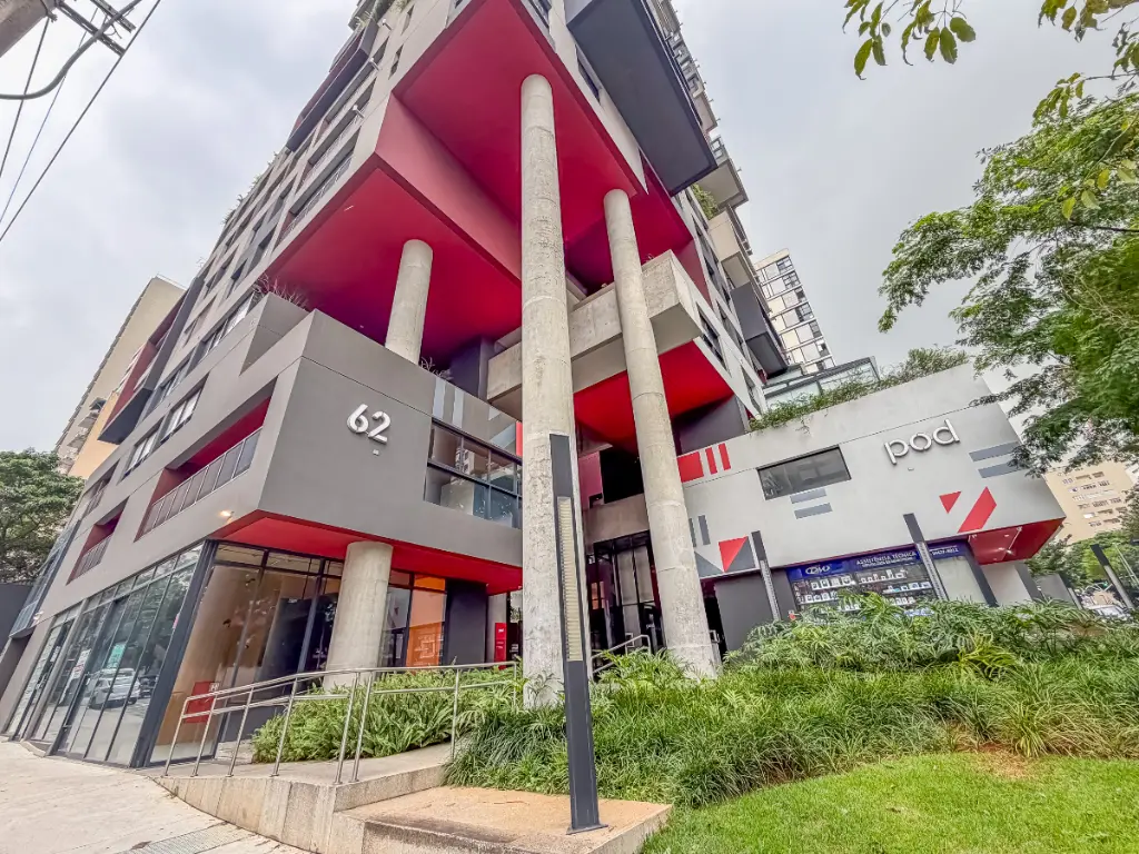 Localizada no POD Pinheiros, um empreendimento moderno que integra unidades comerciais e residenciais em um conceito contemporâneo