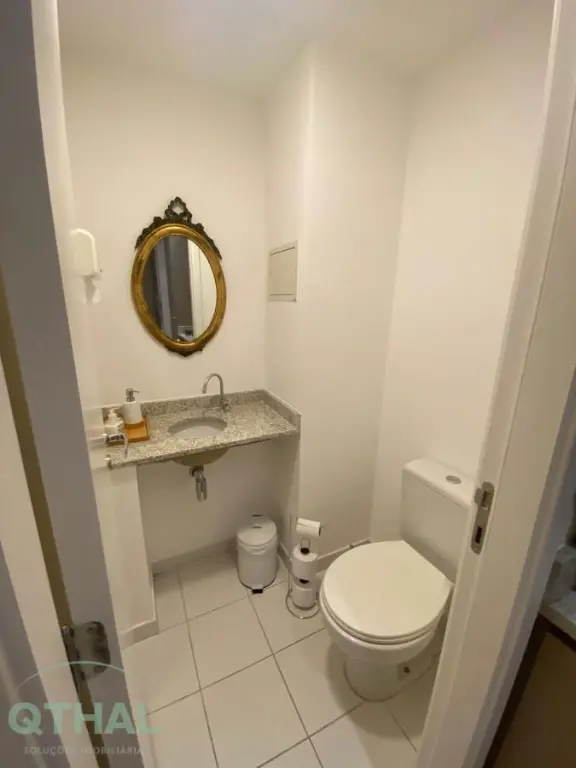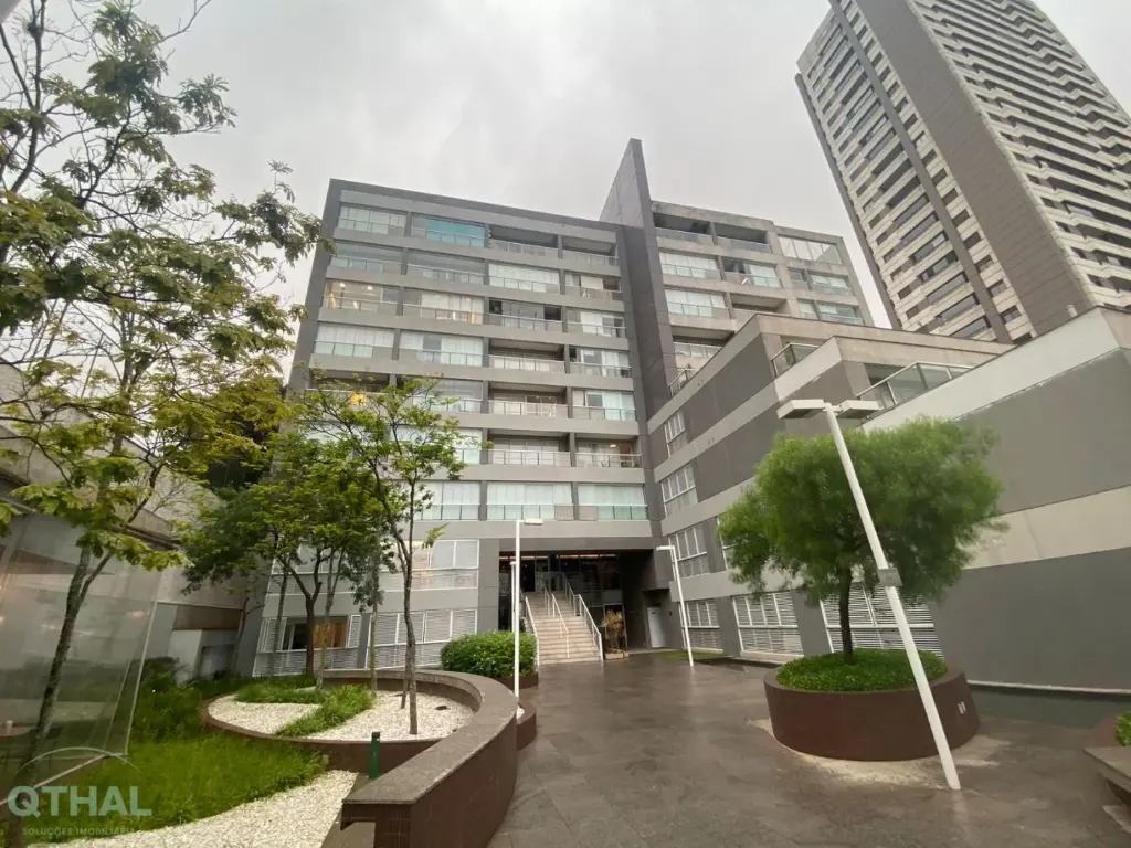 Com 1 sala, 1 banheiro, copa, varanda, 1 vaga de garagem, piso laminado, ar-condicionado