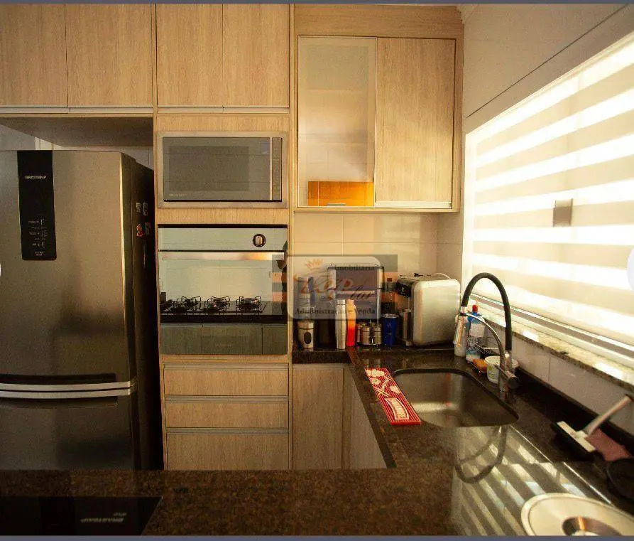 3-Dormitorios com Moveis Planejados, 1-Suíte, Ar condicinado, Sala Ampla, Copa, Cozinha Repleta de Armarios, Lavanderia, 2-Banheiros, Lavabo, Corredor Lateral, Sacada, Quintal com Churrasqueira, 4-Vagas de Garagem, Portão Eletronico.