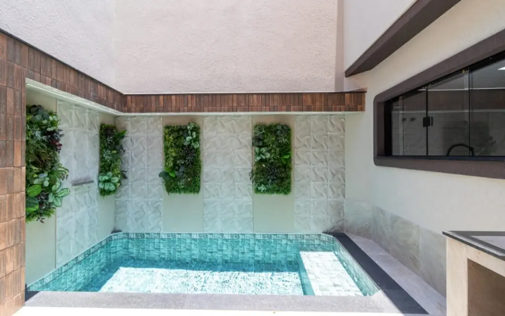 lavanderia, ar condicionado, piscina e 04 vagas de garagem .
