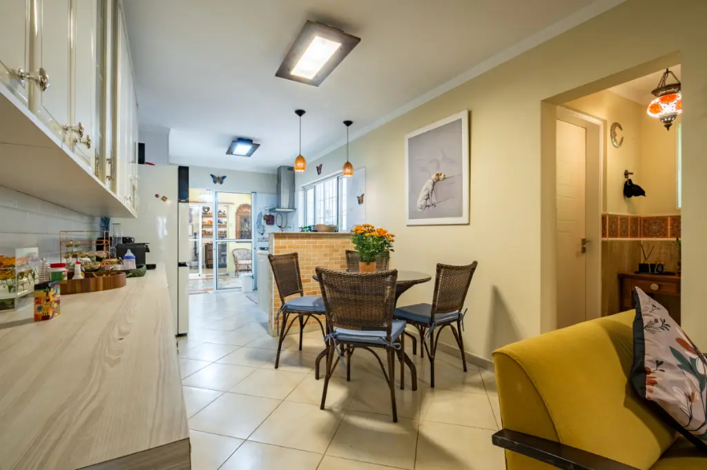 A cozinha conta com marcenaria completa e excelente iluminação natural e a casa tem 1 vaga de garagem.