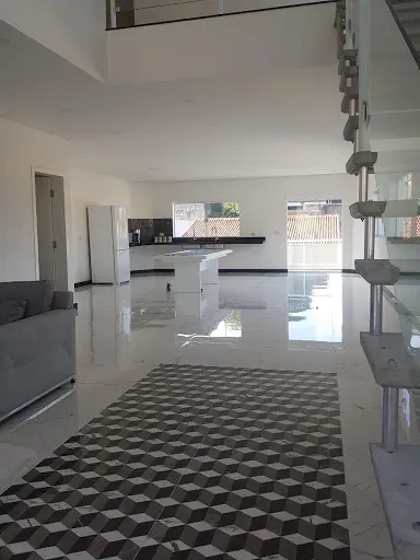 Excelente acabamento, sobrado moderno e funcional, com ótima distribuição dos ambientes, oferece 3 suítes, sala ampla com pé direito duplo, lavabo, copa, cozinha, área de serviço, churrasqueira, piscina, ampla área externa e 10 vagas de garagem.
