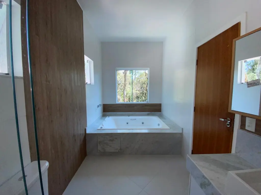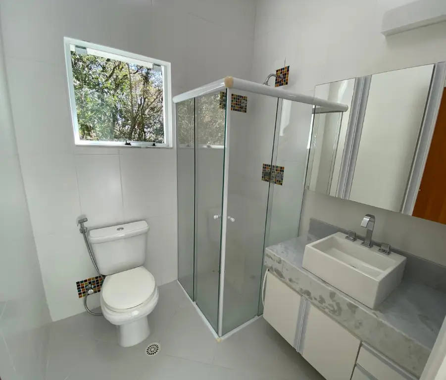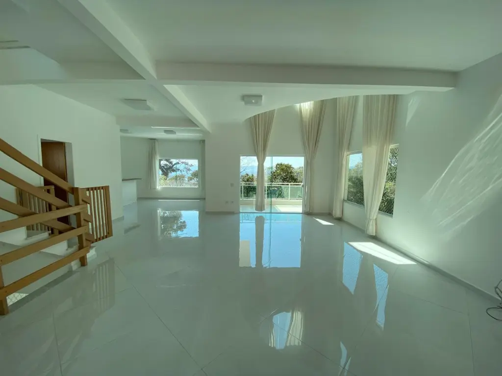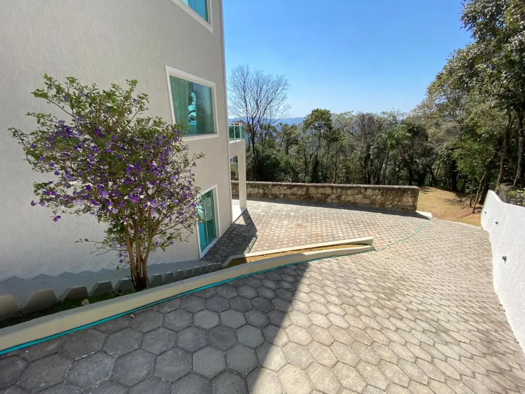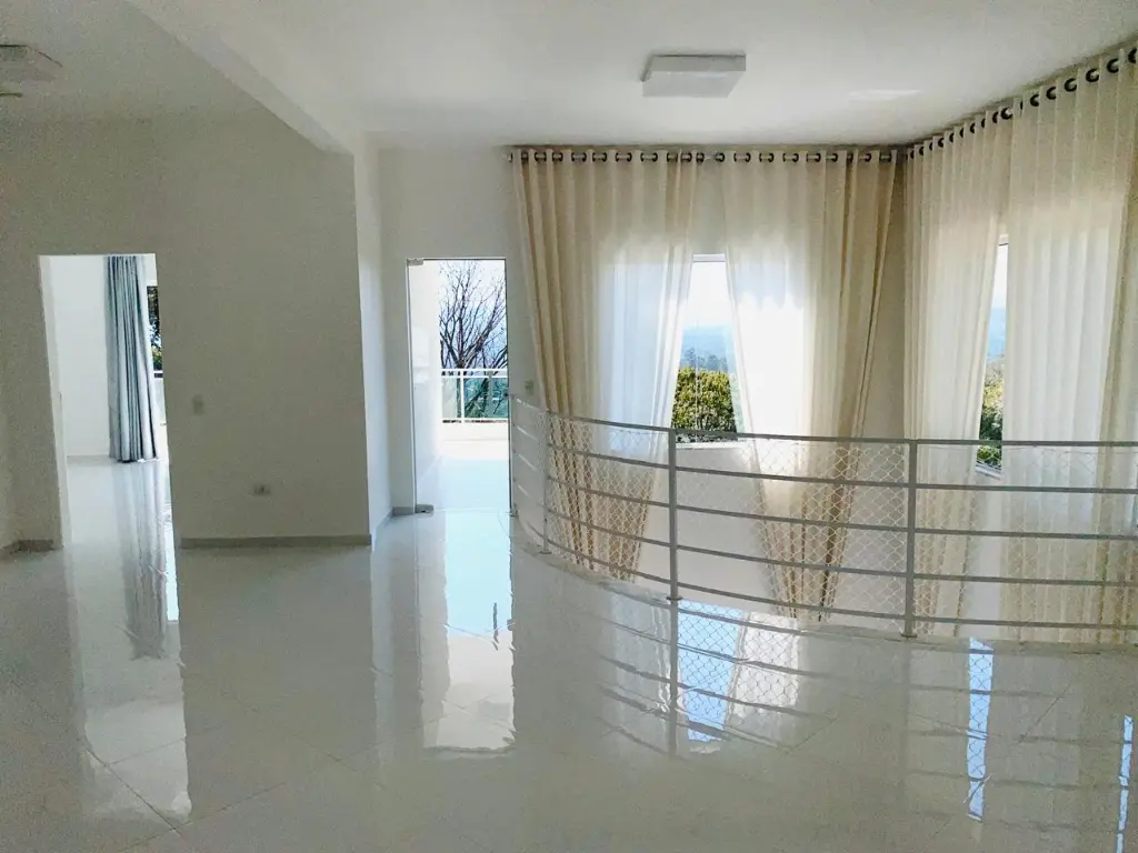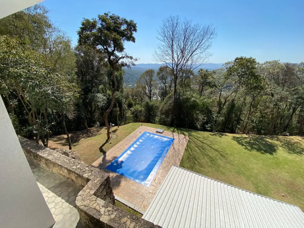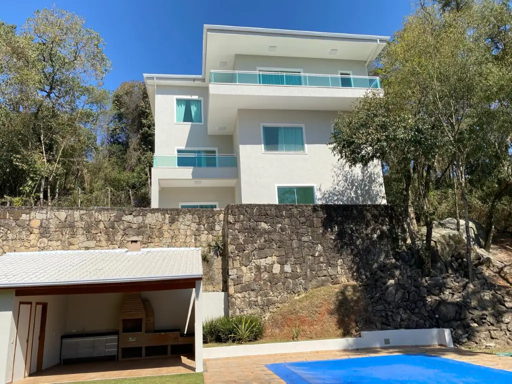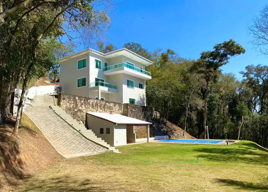 O Sobrado fica no Alpes de Caieiras. A área construída é de 400 metros quadrados. São 2 lotes de 1.500 metros quadrados cada, sendo um deles Área de Preservação Permanente. No total são 3.000 metros quadrados. Os lotes fazem frente para a rua Rio de Janeiro e para a rua João Pessoa. A casa foi construída no meio, assegurando privacidade. A casa tem 3 andares, 3 suítes, sendo uma master com jacuzzi e closet, e vista para a represa da Cantareira. Aquecimento solar para a casa. Possibilidade de internet e TV via fibra, Vivo e Claro. Churrasqueira. Piscina 10x3m, gramado onde se pode fazer um campo de esportes. Tem Habite-se.