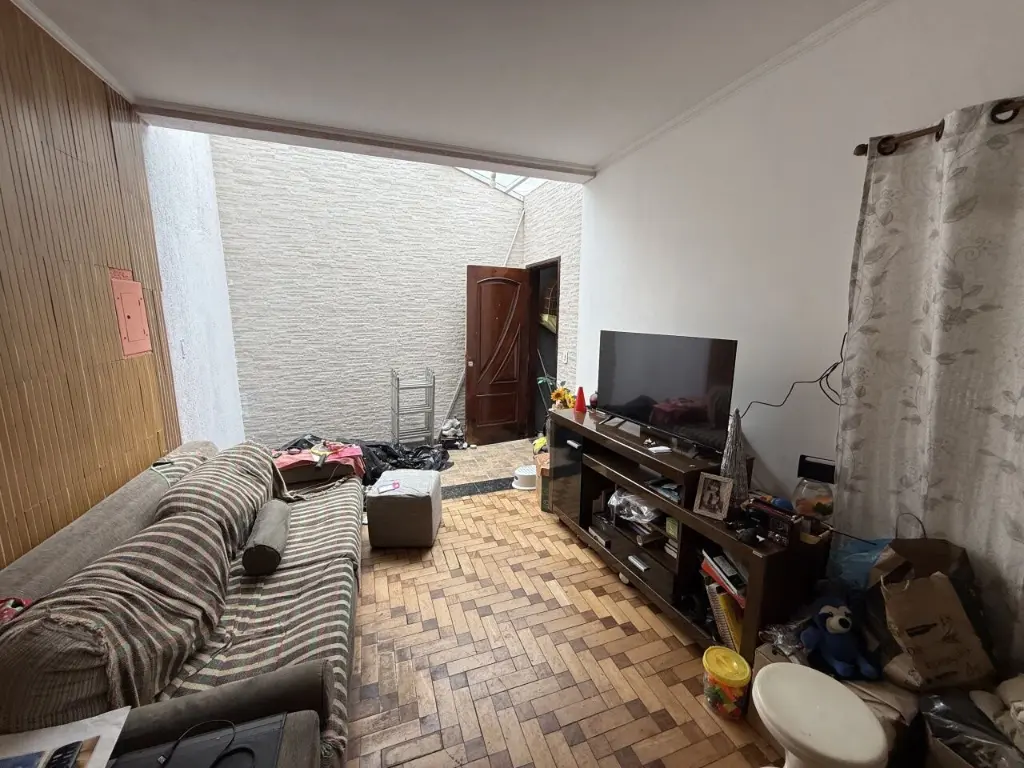 Sobrado com 150m² de área útil, 2 quartos, 3 banheiros e 2 vagas na garagem.