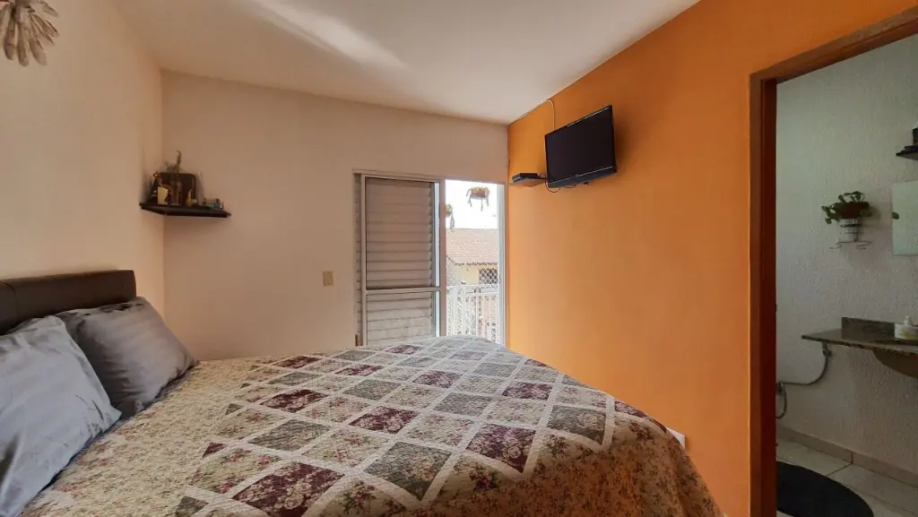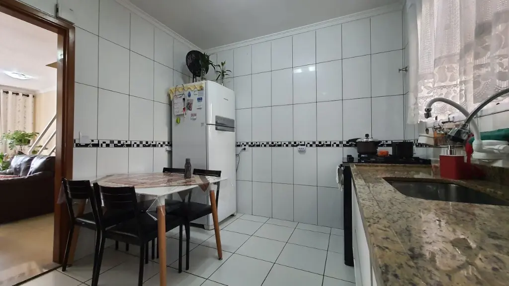 Sobrado com 02 dormitórios, sendo 01 suíte, banheiro social, sala ampla para 2 ambientes, cozinha e área de serviço. Na parte externa, lavanderia e 02 vagas de garagem. Localizado no Jardim Maria Rosa, com fácil acesso a transporte público, comércio e às principais vias da região.
