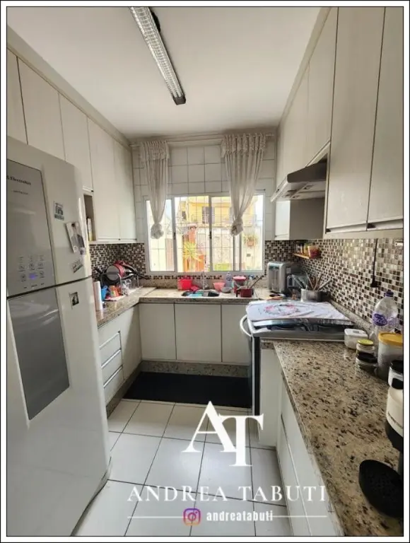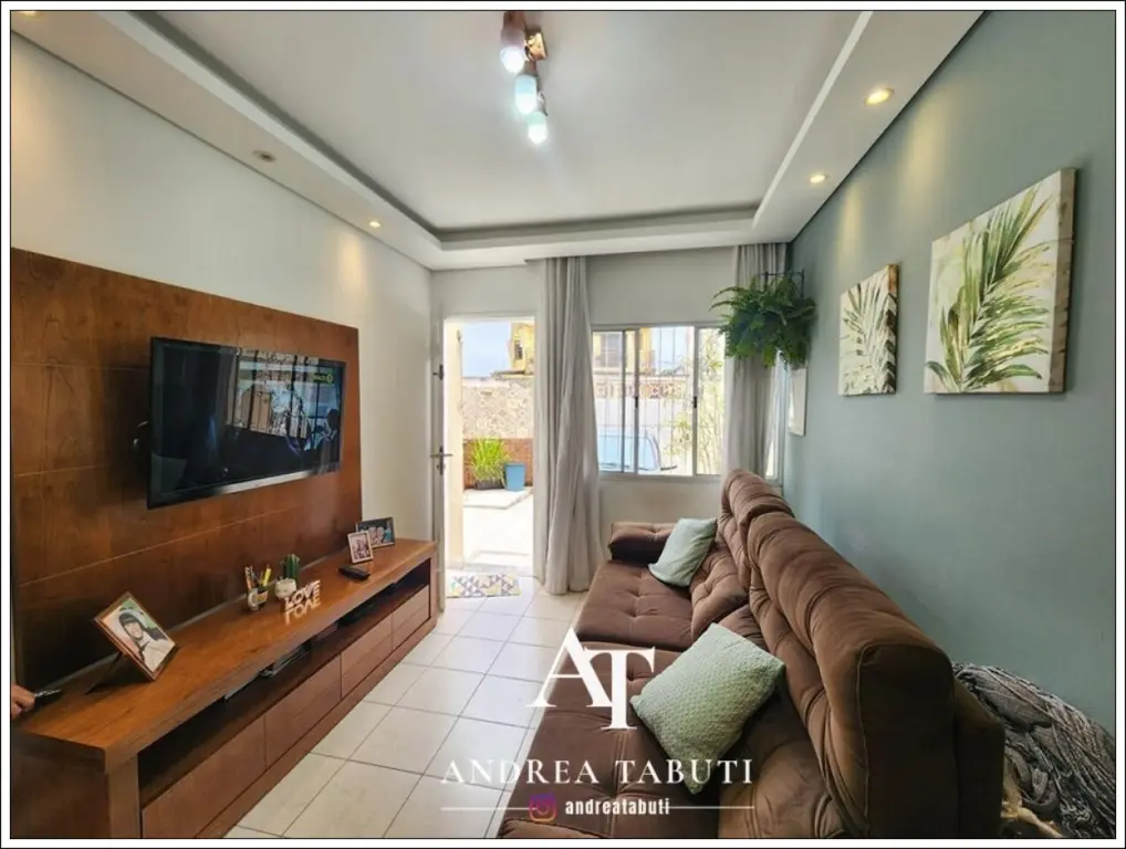 Casa ideal para um casal (acomoda bem 3 pessoas), são 2 dormitorios (um dele com closet), 1 banheiro que atende os dormitorios, 2 vagas de garagem (possui churrasqueira na área da garagem), sala para 2 ambientes, cozinha com armários, área de serviço, lavabo.