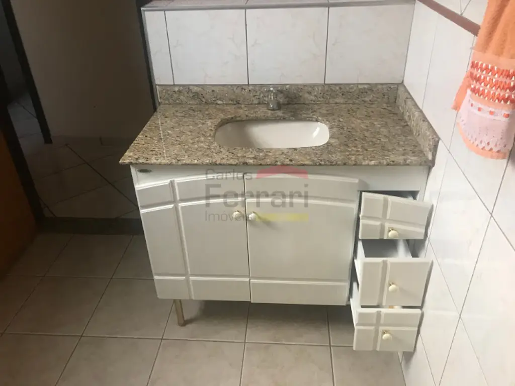 Sobrado com 03 dormitórios, sendo um deles com ar-condicionado, além de escritório climatizado, 02 banheiros e 01 vaga de garagem.
