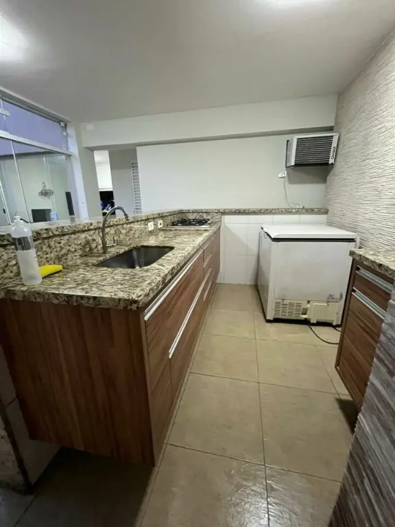 Com 3 dormitórios com armários 1 suíte e closet, sala de jantar e sala de estar, cozinha com planejados, escritório, área de serviço, quintal, churrasqueira e 3 vagas de garagem.