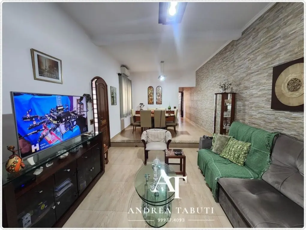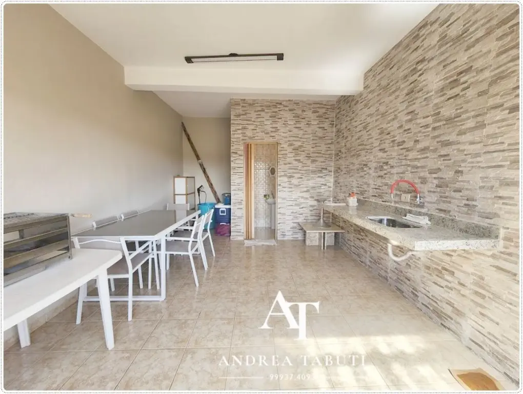 São 3 dormitorios (sendo 1 suite) com armários, 2 vagas de garagem coberta, lavabo, cozinha ampla repleta de armários, despensa, área de serviço, 1 banheiro social que atende os dormitorios, quintal com churrasqueira.