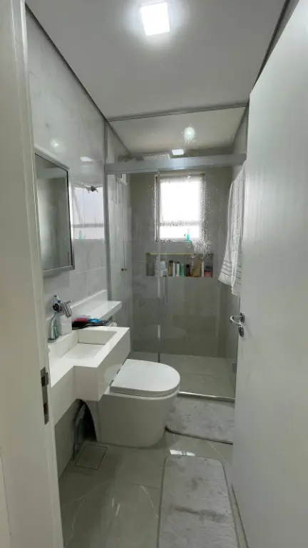 Banheiros modernos com box de vidro;