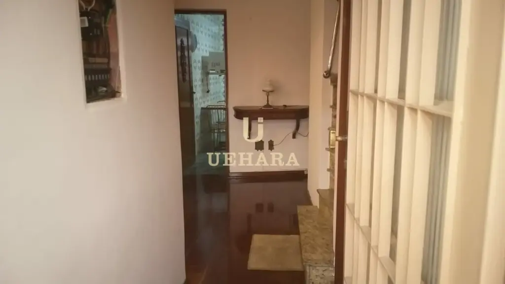 Sobrado principal com hall de entrada, sala de estar e jantar, lavabo, cozinha com geladeira, fogão, forno elétrico e micro ondas, depósito embaixo da escada, 03 dormitórios com ar condicionado e janelas acústica, sendo 02 suítes com box de vidro no andar superior e com armários, cortinas, tapetes, lustres e máquina de lavar, 03 vagas de garagem com portão eletrônico.