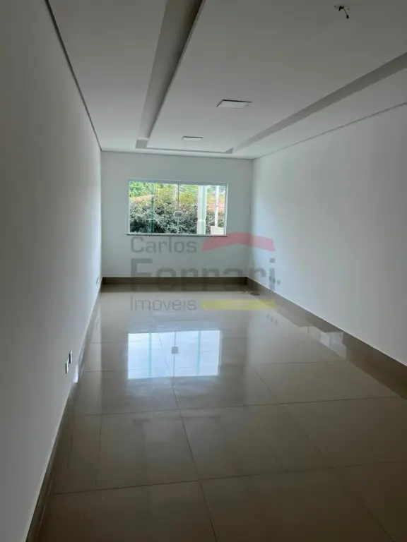 Sobrado novo com 03 dormitórios sendo 01 suíte, lavabo, piso em porcelanato, quintal, churrasqueira, jardim de inverno, sala ampla para dois ambientes.