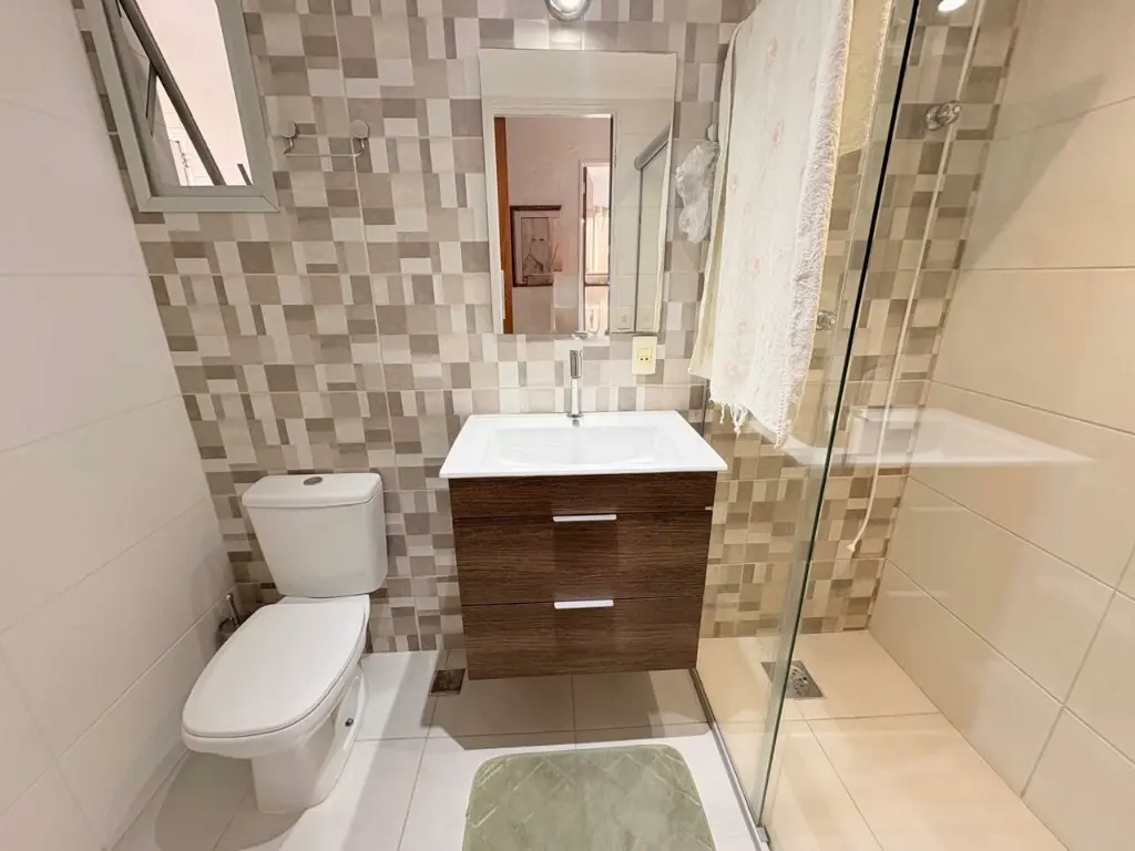 Apartamento de 64m2, 3 quartos, 2 banheiros, sacada com vista livre.