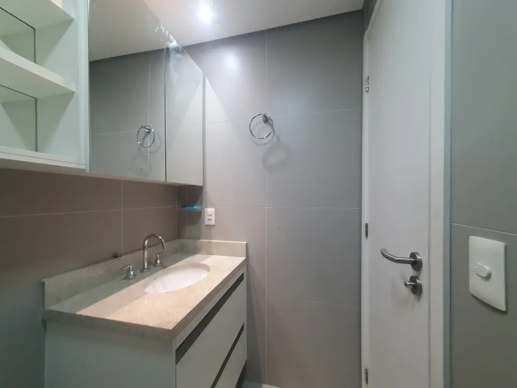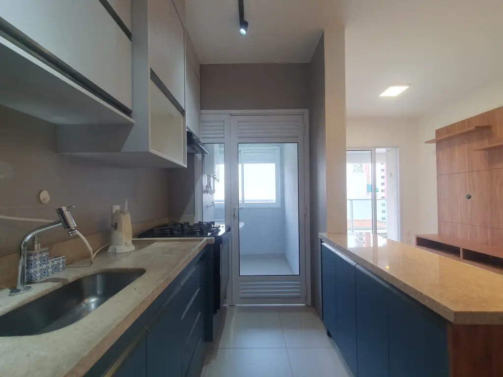 O imóvel possui sala com sacada, 1 dormitório com armário e ar-condicionado, banheiro, cozinha com armários equipada com geladeira e fogão, além de área de serviço. Conta também com 1 vaga de garagem, oferecendo praticidade para o dia a dia.