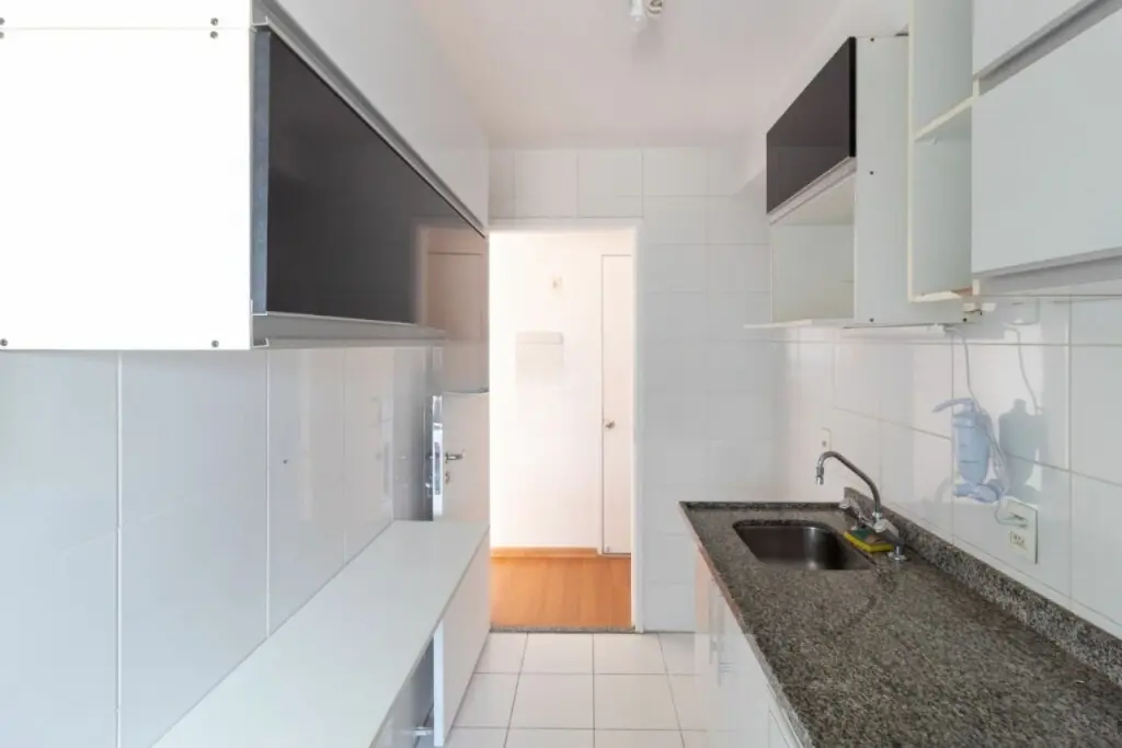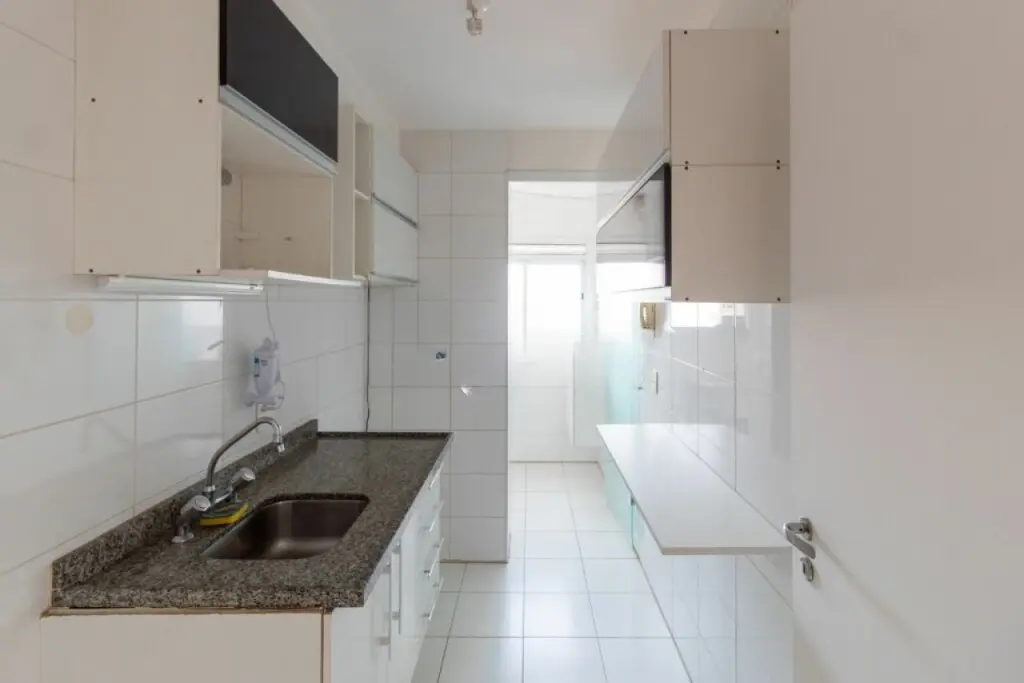 Excelente apartamento co m 1 vaga de garagem e 63 m² distribuídos em 2 quartos com armários embutidos, sendo 1 suíte, sala de estar com sacada, cozinha com armários planejados e bancada, banheiro social e área de serviço com armário.