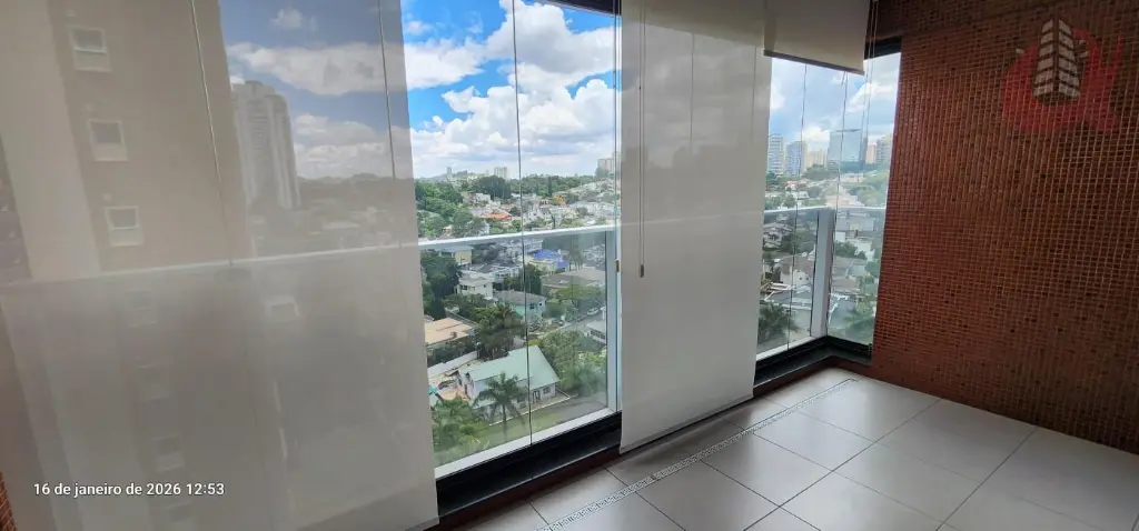 Sacada envidraçada com persianas em todas as janelas ja instaladas e também na sacada. Vista completamente livre.