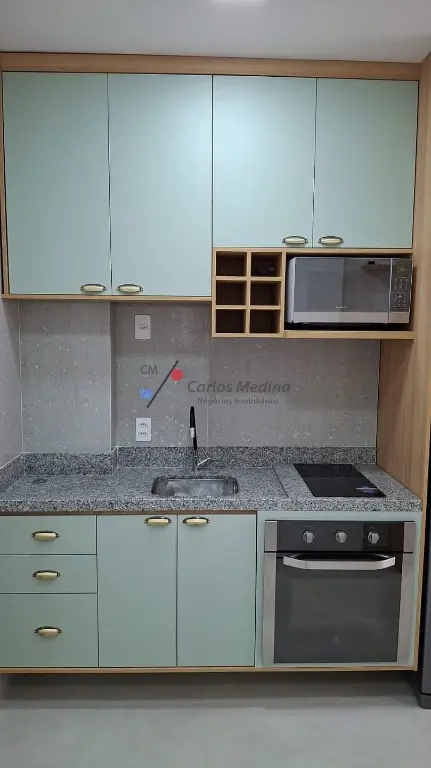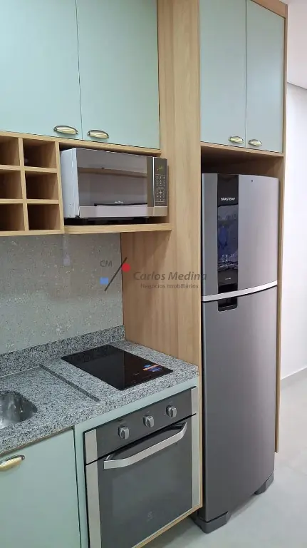 -Com 32.m2 - 1 Vaga de Garagem, 01 dormitórios - sala, cozinha, banheiro, totalmente mobiliado.
