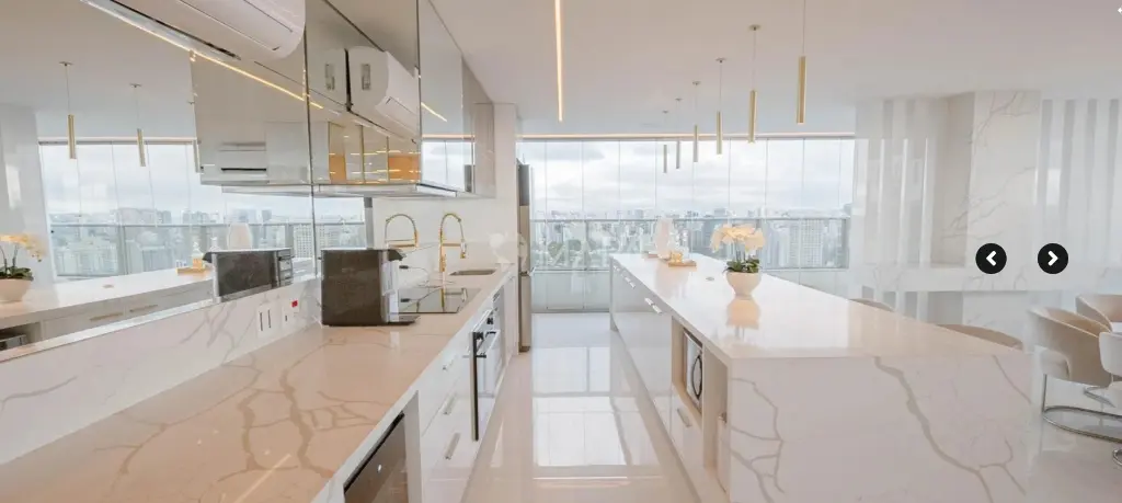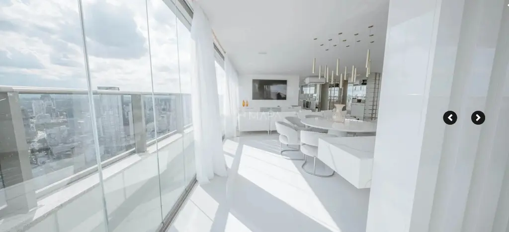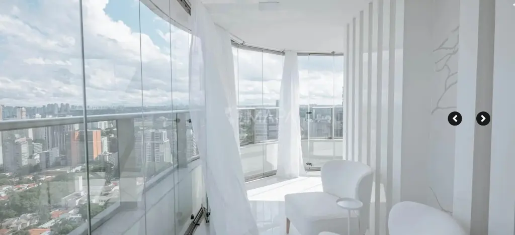A penthouse conta com revestimentos em porcelanato e uma linha de eletrodomésticos Home Pró de última geração. Com envidraçamento 180o do piso ao teto, a vista panorâmica da cidade de São Paulo se revela de qualquer ponto do imóvel.