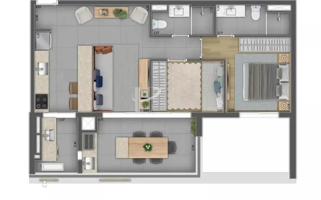 Apartamento novo, varanda, andar alto, com vista para Faria Lima.