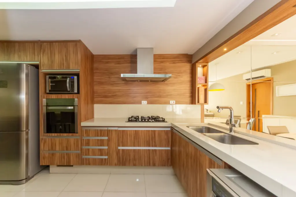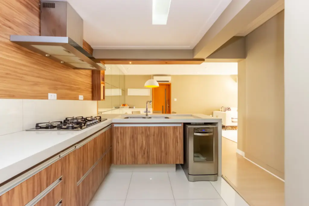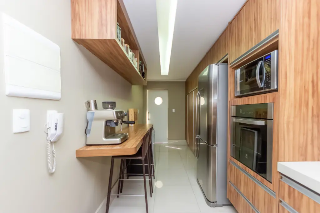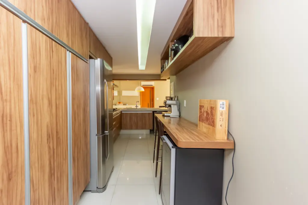 O apartamento impressiona pela amplitude e pela otimização dos espaços. A sala ampla integrada à cozinha cria um ambiente moderno e acolhedor, perfeito para o convívio familiar e para receber amigos. Esta configuração contemporânea valoriza a sensação de espaço e proporciona fluidez entre os ambientes, ideal para o estilo de vida atual.