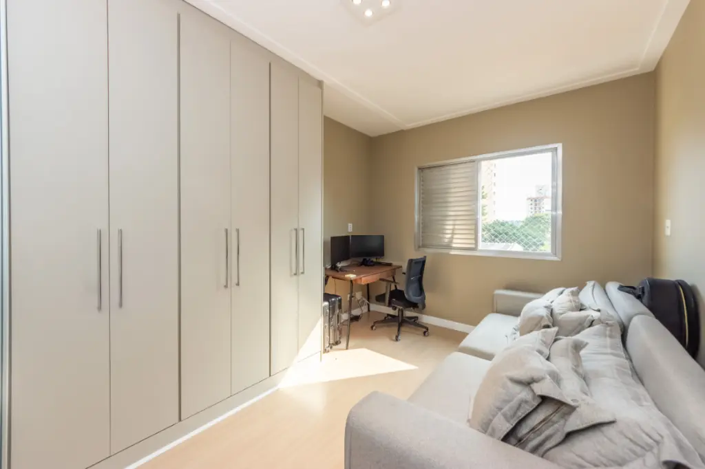 Um dos grandes destaques são os inúmeros armários planejados e embutidos distribuídos estrategicamente por todo o apartamento. Esta característica agrega valor significativo ao imóvel, oferecendo organização perfeita e aproveitamento máximo de cada centímetro. O piso novo em todo o apartamento traz modernidade e está impecável, dispensando grandes investimentos adicionais.