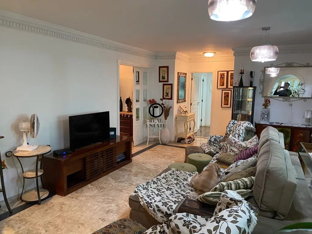 O apartamento possui três amplas suítes, todas com ar-condicionado e acabamento refinado. A suíte máster conta com excelente iluminação natural, espaço generoso para closet e banheiro revestido em mármore, oferecendo uma atmosfera de puro relaxamento.A área social é um dos grandes destaques: sala de estar espaçosa com piso em mármore, janelas amplas e integração com a sala de jantar, criando um ambiente elegante e acolhedor para receber amigos e familiares. O escritório privativo é ideal para quem trabalha em casa, oferecendo praticidade e conforto.A cozinha é ampla, com armários planejados e bancada funcional, conectada a uma dispensa e lavanderia independente. Há ainda quarto e banheiro para funcionários, garantindo total comodidade.O imóvel conta com 4 vagas de garagem fixas e amplas, além de depósito privativo na garagem.Condomínio:.R$5.000,00 p/mêsIPTU:.R$3.500,00