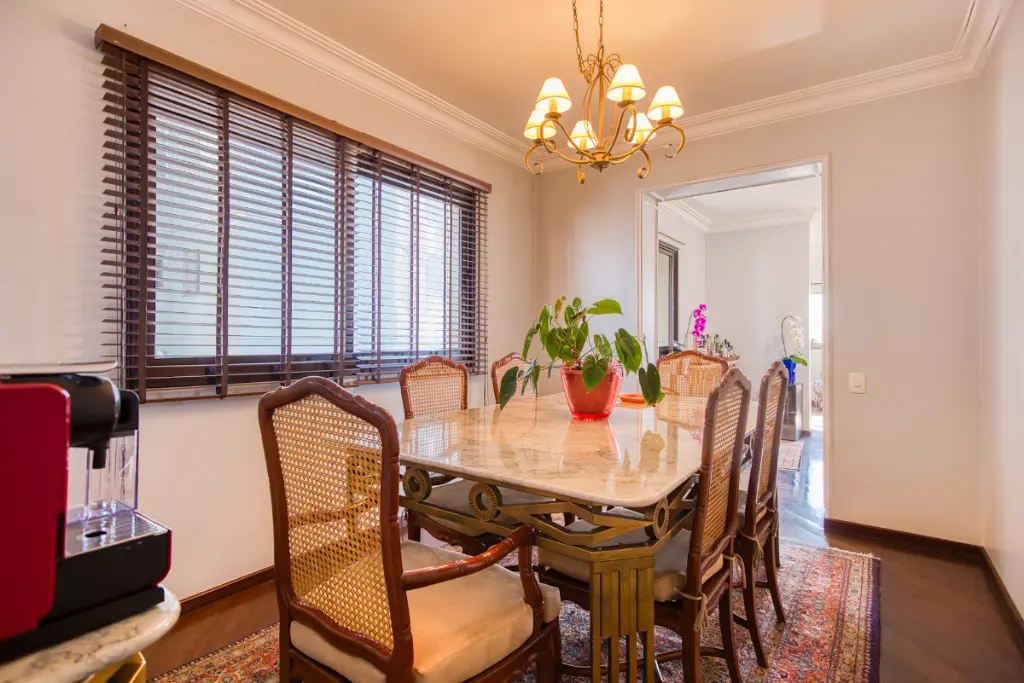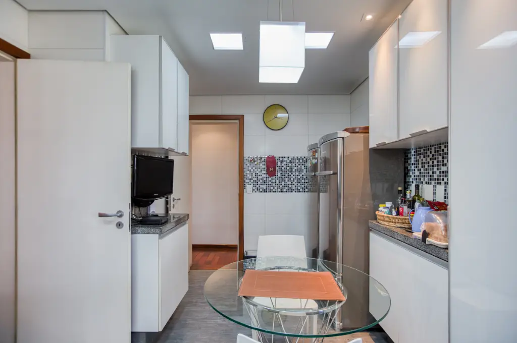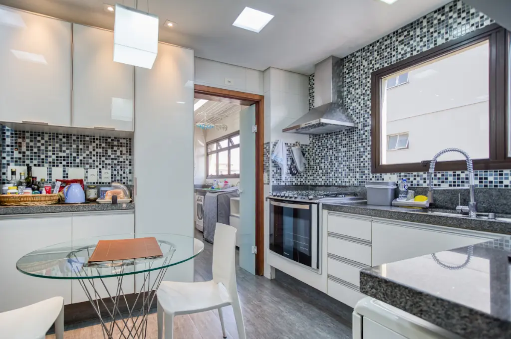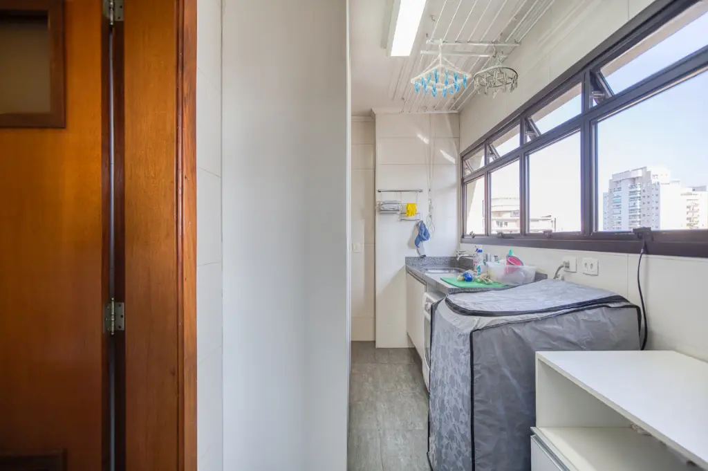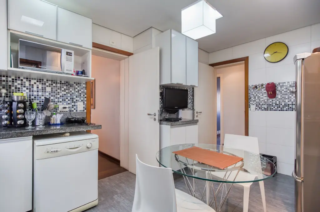 A cozinha, área de serviço e dependência de empregada oferecem praticidade para o dia a dia. Para completar, o apartamento conta com três vagas de garagem e um depósito privativo, diferenciais que proporcionam conveniência e organização.