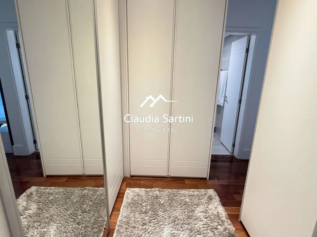 Acabamentos de alto padrão, porta pivotante em madeira e armários planejados em todos os ambientes