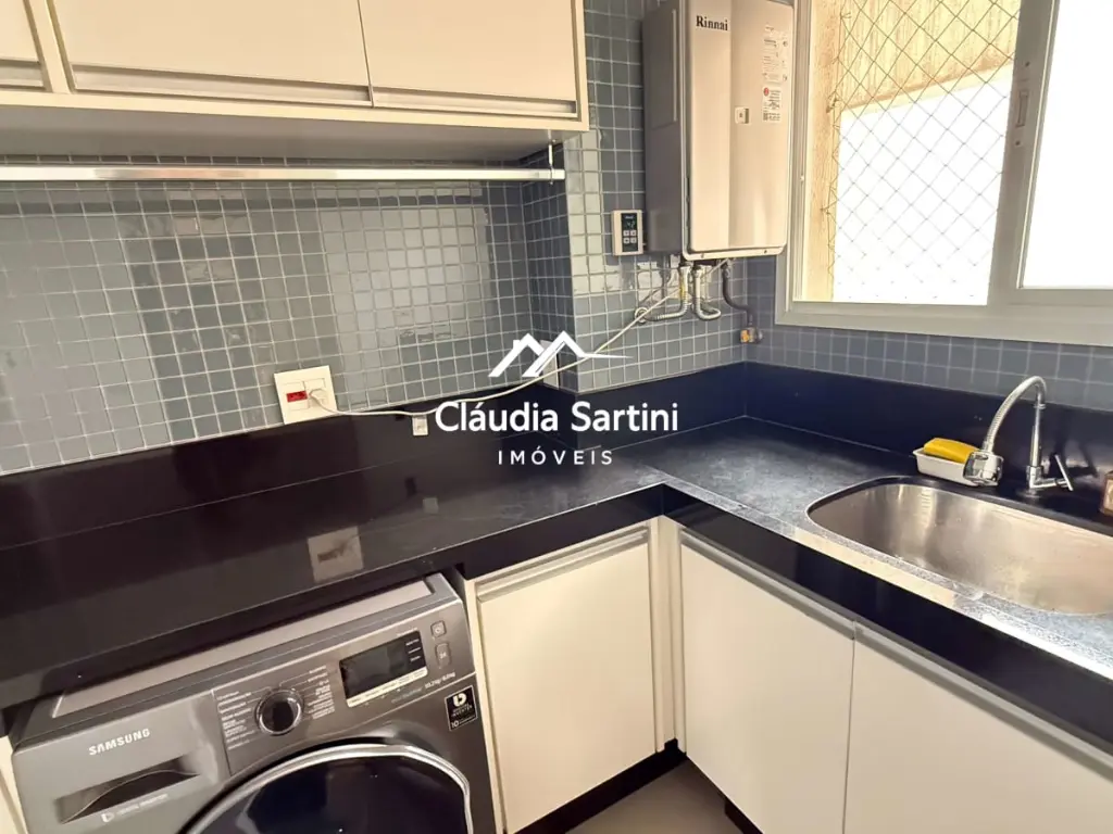 Varanda envidraçada com pia e bancada, ideal para receber amigos