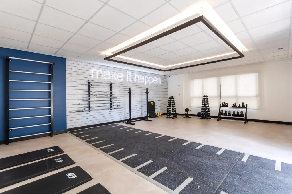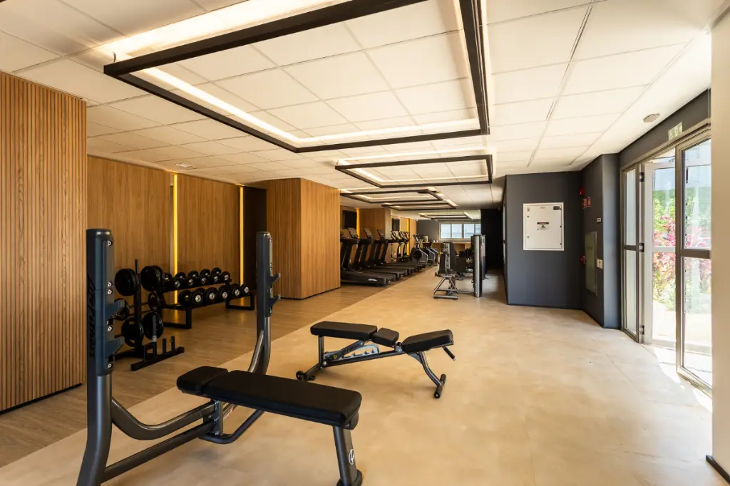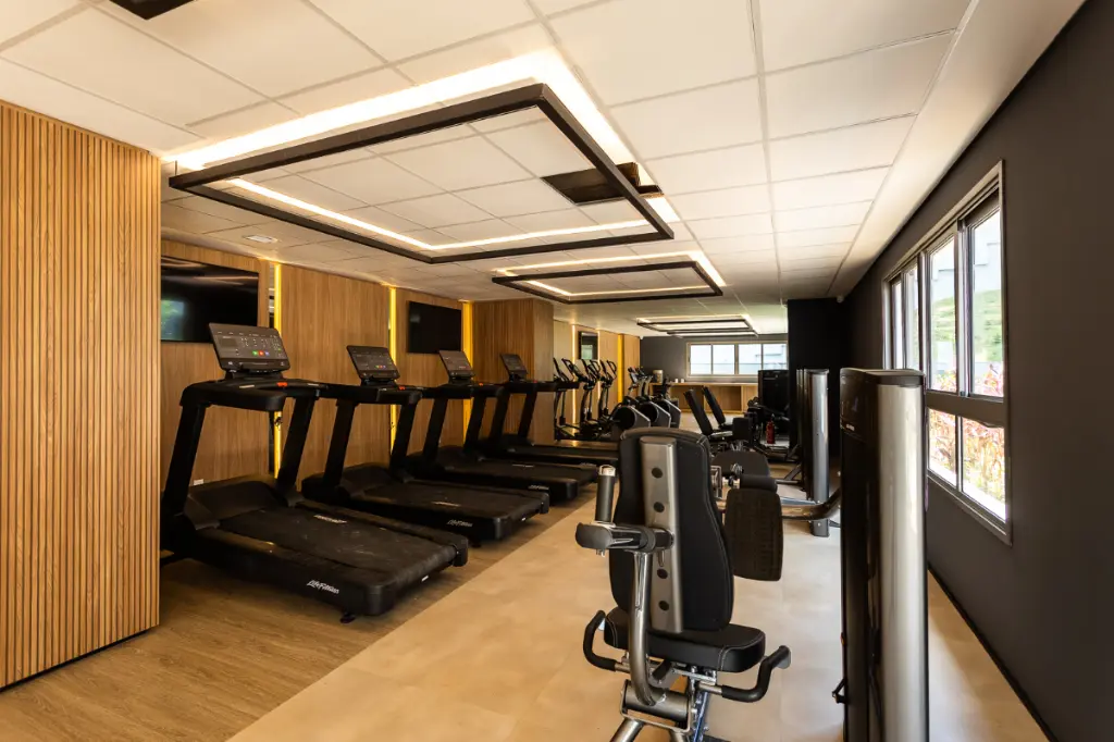 Dois espaços fitness (musculação com Companhia Athletica + cardio)