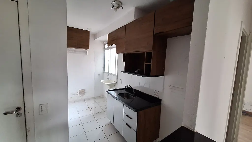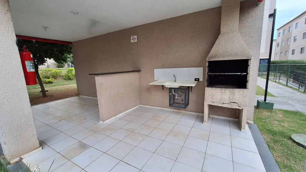 Apartamento com 2 quartos, 1 banheiro, sala 2 ambientes, cozinha e área de serviço. Condomínio com churrasqueira, salão de festas, playground, minimercado e portaria física 24 horas.