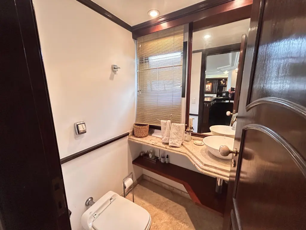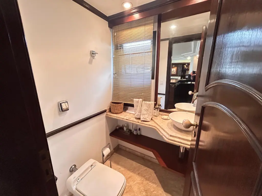 Ao todo são **5 banheiros**, sendo **2 das suítes, 1 lavabo, 1 banheiro social e 1 banheiro de serviço**, oferecendo praticidade e conforto para moradores e visitantes.