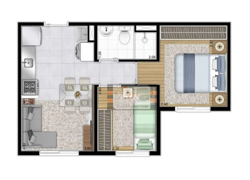 Condomínio: R$ 410,00 (já inclui água e gás)