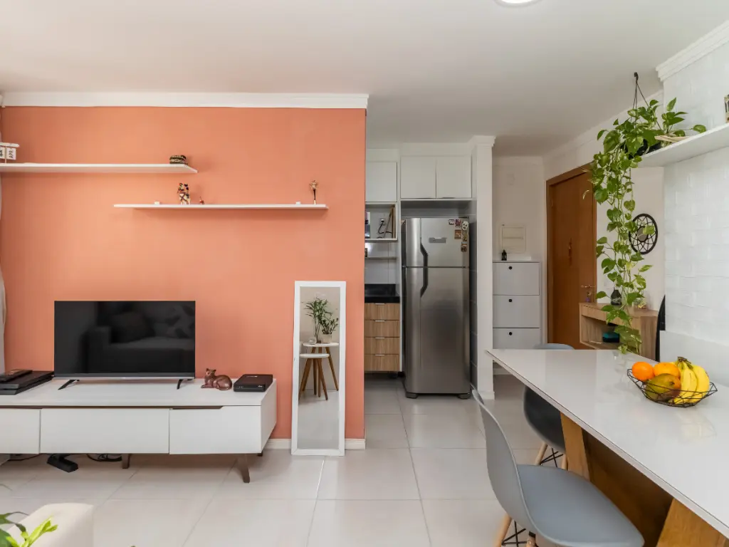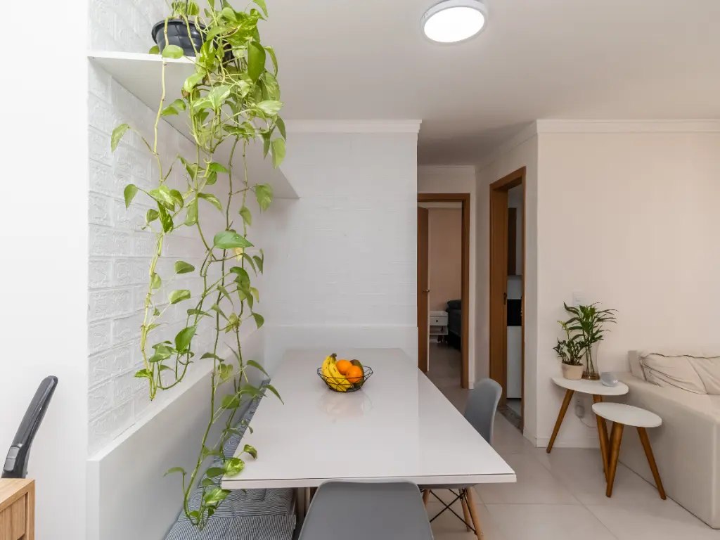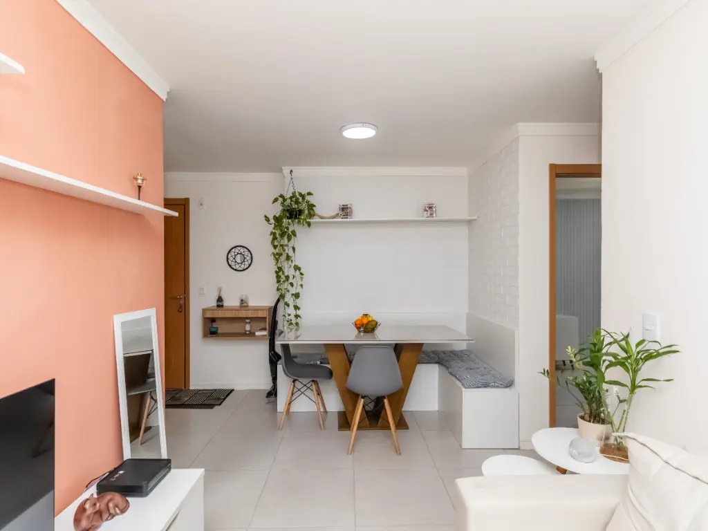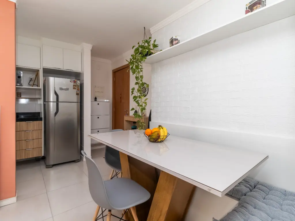 Sala em 2 ambientes (estar e jantar) com charmoso canto alemão para refeições práticas.