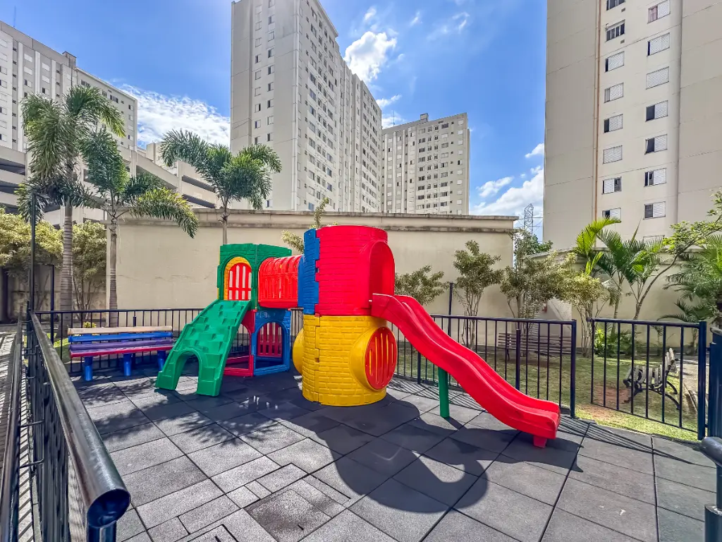 Salão de festas com churrasqueira, playground e bicicletário - perfeito para famílias.