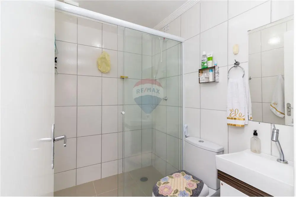 O banheiro, elegantemente reformado, tem um box espaçoso, garantindo além de funcionalidade e estilo, conforto aos moradores.