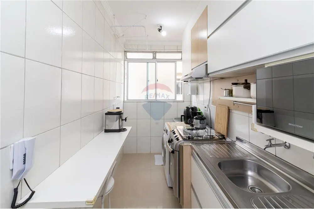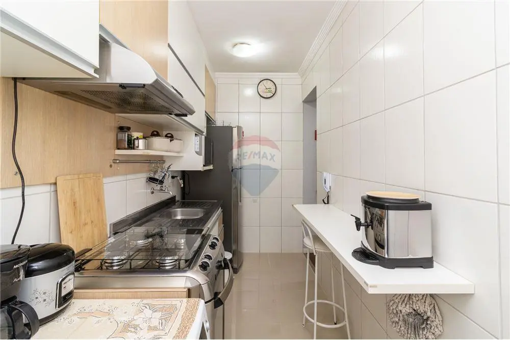 A cozinha, é equipada com armários planejados que maximizam a organização e a praticidade. Visando a distribuição inteligente do espaço, a lavanderia é integrada a cozinha.