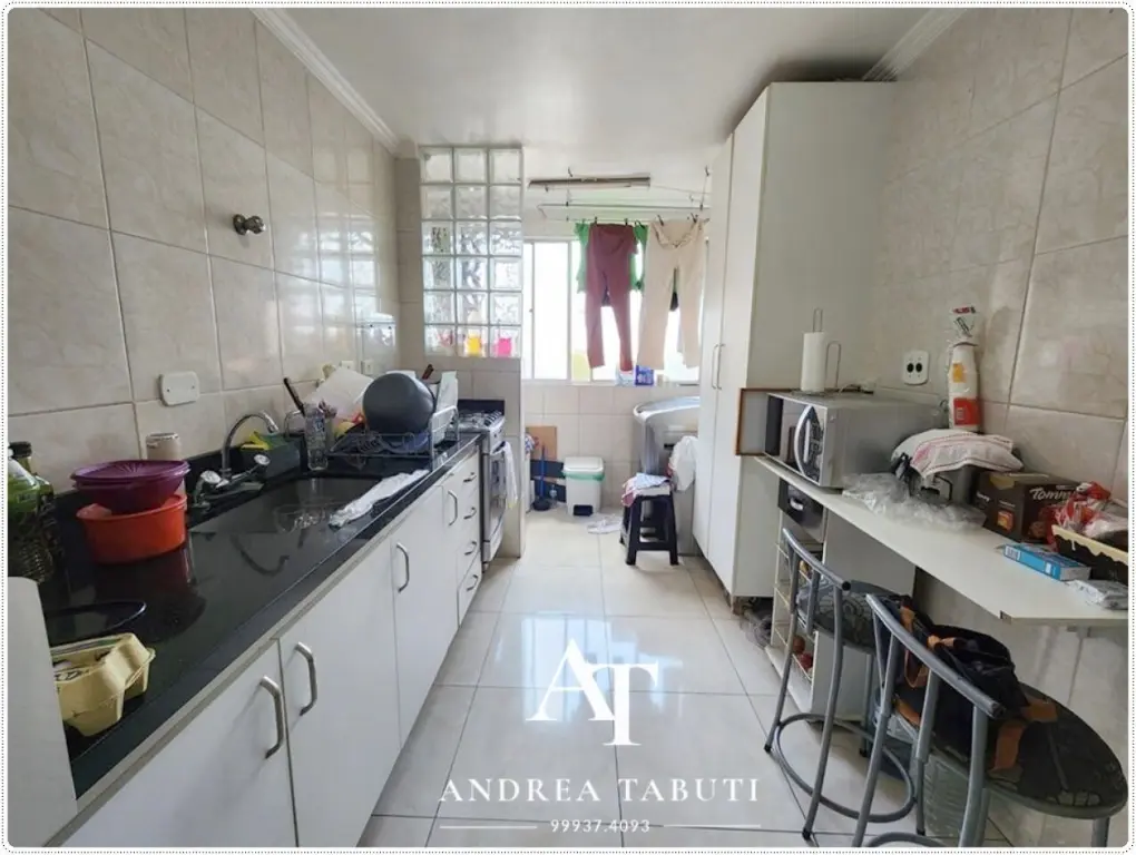 São 3 dormitorios com armários, 1 vaga, sala para 2 ambientes, cozinha com armários, área de serviço, 1 banheiro .